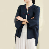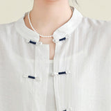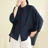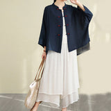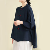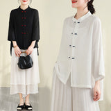 Buddha Stones 2pcs Casual Women's Frog Button Shirt Loose Pants Meditation Clothing Set