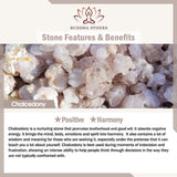 Chalcedony is a nurturing stone that promotes brotherhood and good will. It absorbs negative energy. It brings the mind, body, emotions and spirit into harmony. It also contains a lot of wisdom and meaning for those who are seeking it, especially under the pretense that it can teach you a lot about yourself. Chalcedony is best used during moments of indecision and frustration, showing an intense ability to help people think through decisions in the way they are not typically confronted with.