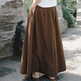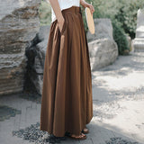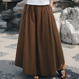 Buddha Stones Casual Plain Loose Cotton Women's Wide Leg Pants With Pockets