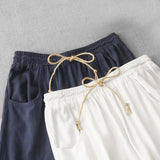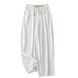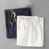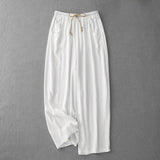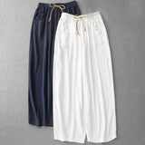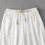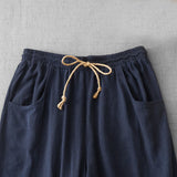 Buddha Stones Casual Pure Color Drawstring Simple Design Women's Cotton Pants With Pockets