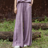 Buddha Stones Casual Tie-Dye Women's Linen Wide Leg Pants With Pockets
