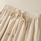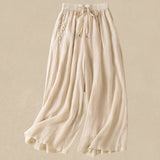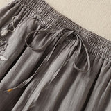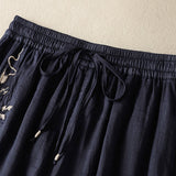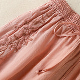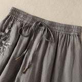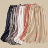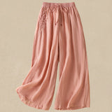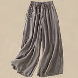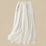 Buddha Stones Commute Embroidery Drawstring Women's Cotton Wide Leg Pants With Pockets