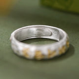 Buddha Stones Hammer Pattern Om Mani Padme Hum Copper Plated Silver Wealth Ring