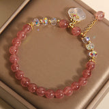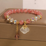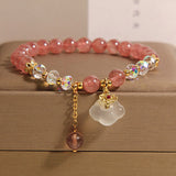 Buddha Stones Auspicious Clouds Strawberry Quartz White Agate White Crystal Positive Bracelet