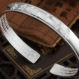 Forged from sterling silver and resilient white copper alloy, this cuff balances elegance with strength. Its 8mm width offers subtle boldness, while the adjustable length (15-20cm) ensures a perfect fit for all wrists. The unisex design merges minimalist sophistication with spiritual depth, pairing effortlessly with meditation robes, office attire, or casual wear. More than jewelry—it’s a timeless heirloom blending artistry with intention.