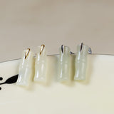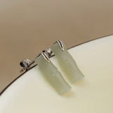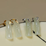 Buddha Stones Bamboo Hetian Jade 925 Sterling Silver Leaf Wealth Earrings