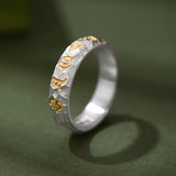 Buddha Stones Hammer Pattern Om Mani Padme Hum Copper Plated Silver Wealth Ring