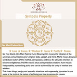 Hum means inseparability; symbolizing purity and can be achieved by the unity of method and wisdom. This chant brings you joy and peaceful vibrations and, supposedly, contained in this verse, is the truth of the nature of suffering and how to remove its causes.