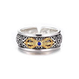 Buddha Stones Vintage Tibetan Vajra Auspicious Clouds Pattern Copper Pleated Silver Balance Ring